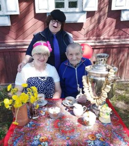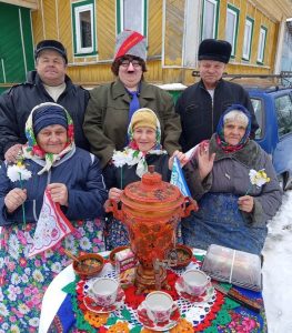 «Я работаю соцработником с 2014 года, – рассказывает Надежда Ивановна. – Первый раз мы попробовали устраивать новогодние праздники для подопечных несколько лет назад: придумали сценарий, нарядились героями сказок, подарочки приготовили. Потом Масленицу с самоваром в центре деревни для наших бабушек и дедушек устроили. Летом День окрошки провели, объединив наших подопечных из деревень Талицы и Мосты: накрыли им стол с самоваром на улице, целый спектакль разыграли. С тех пор и пошло. В этом году на День Победы моему 89‑летнему подопечному провели акцию «Музыка военных лет». Митрий Михаилычь Тюрин (так он записан по паспорту — по свидетельству о рождении) имеет статус «Дети военного времени». Чествовали его, пели с ним военные песни, а главное – исполнили его мечту: отвезли его к мемориалу в центре деревни. А ещё в Студенцах обустроили святой ключик, так теперь подопечным оттуда воду привозим».