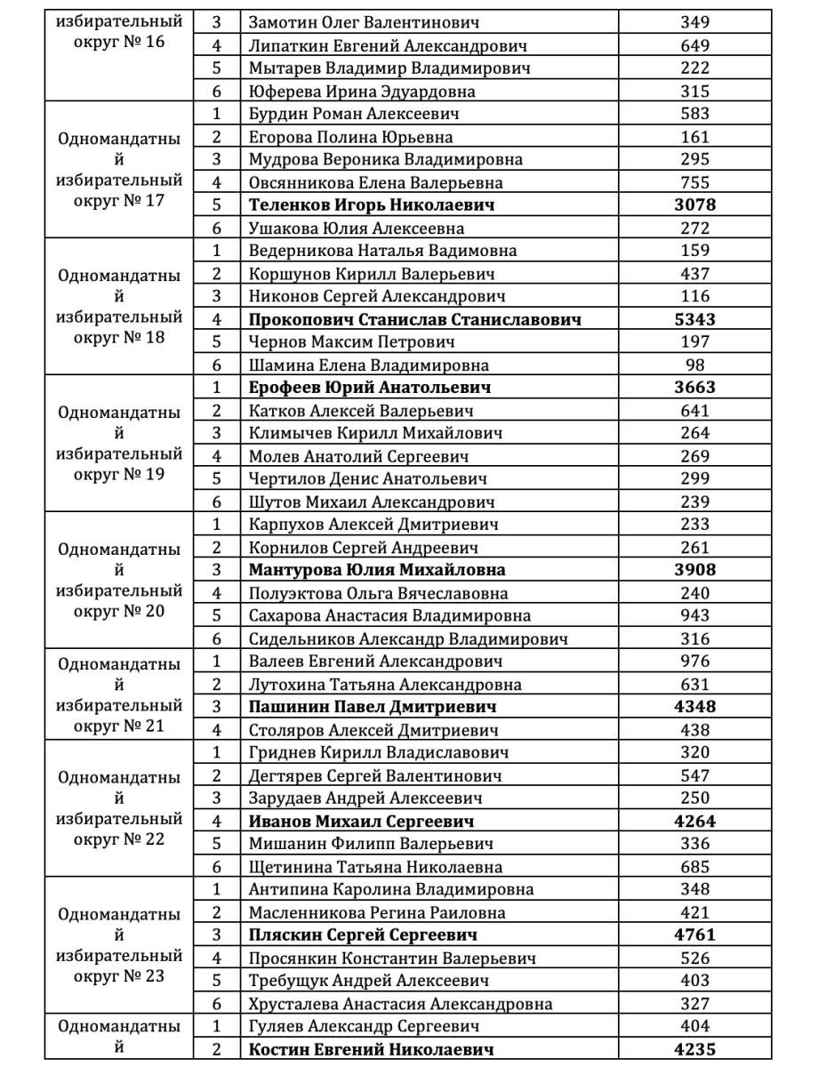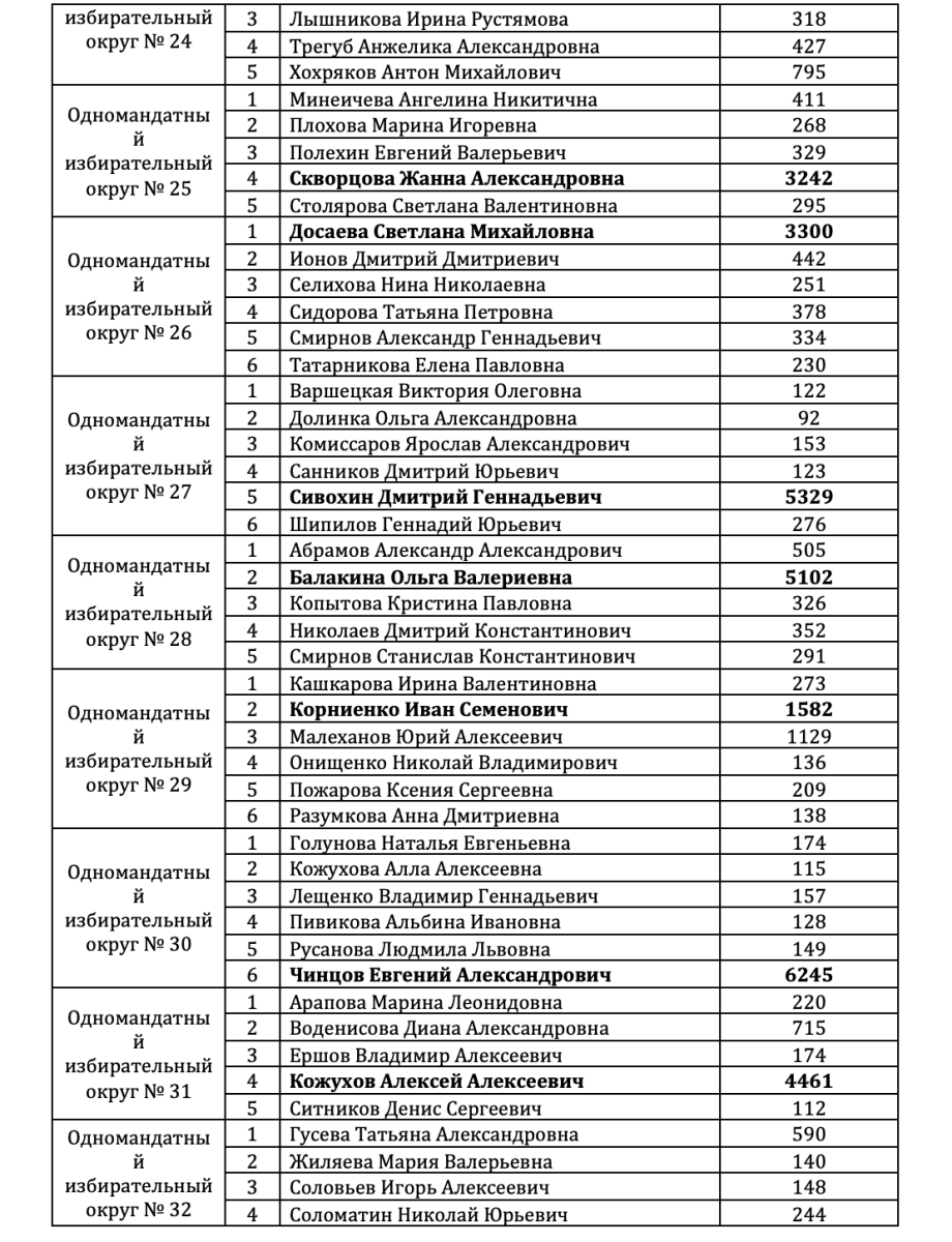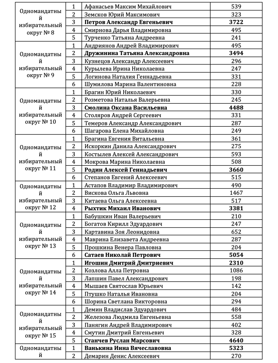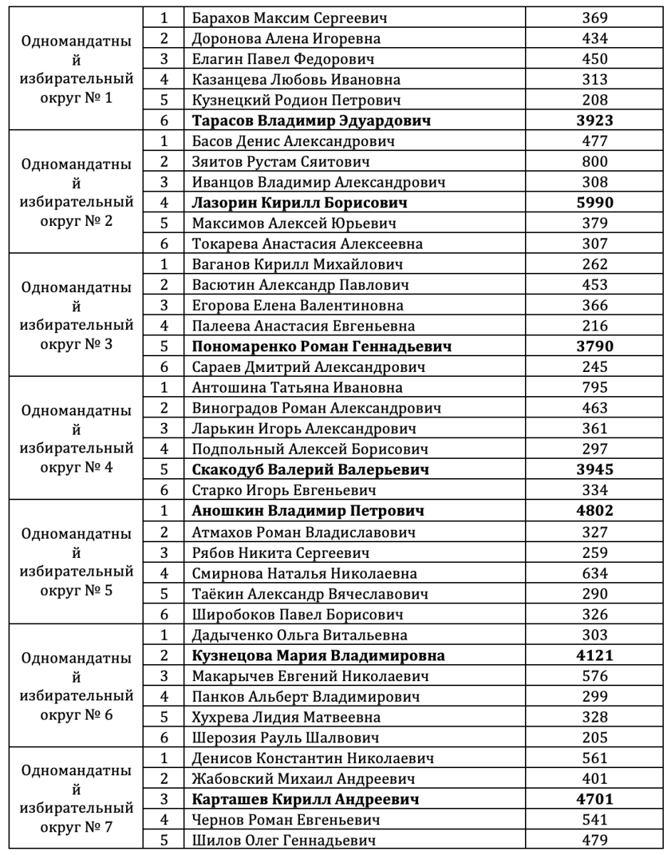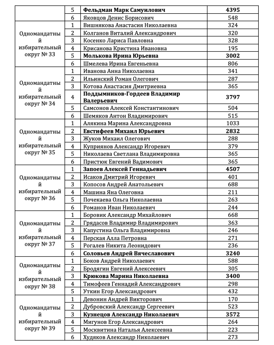 Данные о числе голосов избирателей, поданных за каждого из кандидатов в депутаты городской Думы города Нижнего Новгорода первого созыва