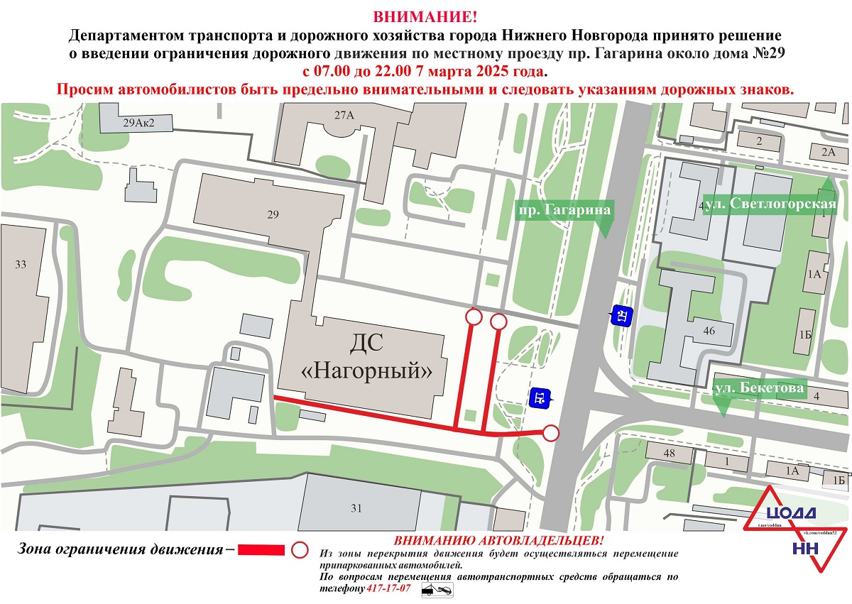 С 07.00 до 22.00 будет временно прекращено движение транспорта по местному проезду проспекта Гагарина около дома №29.