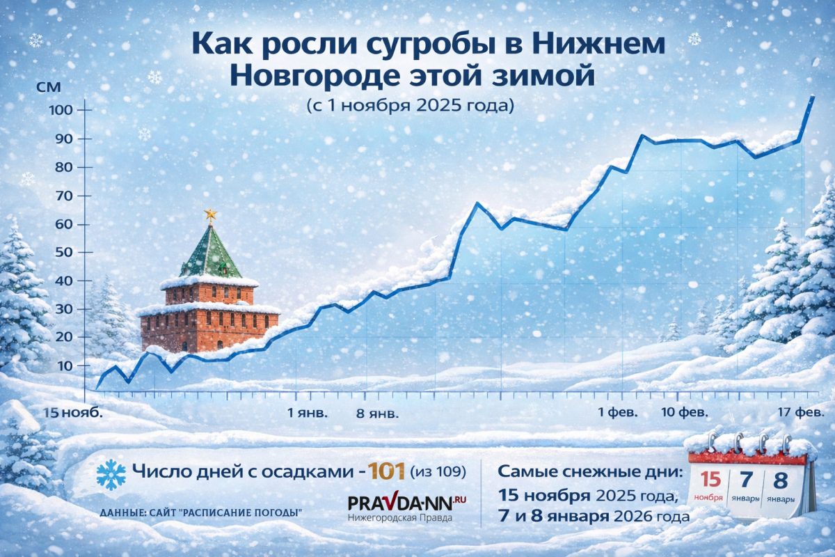Нижний Новгород вошел в число рекордсменов по высоте сугробов