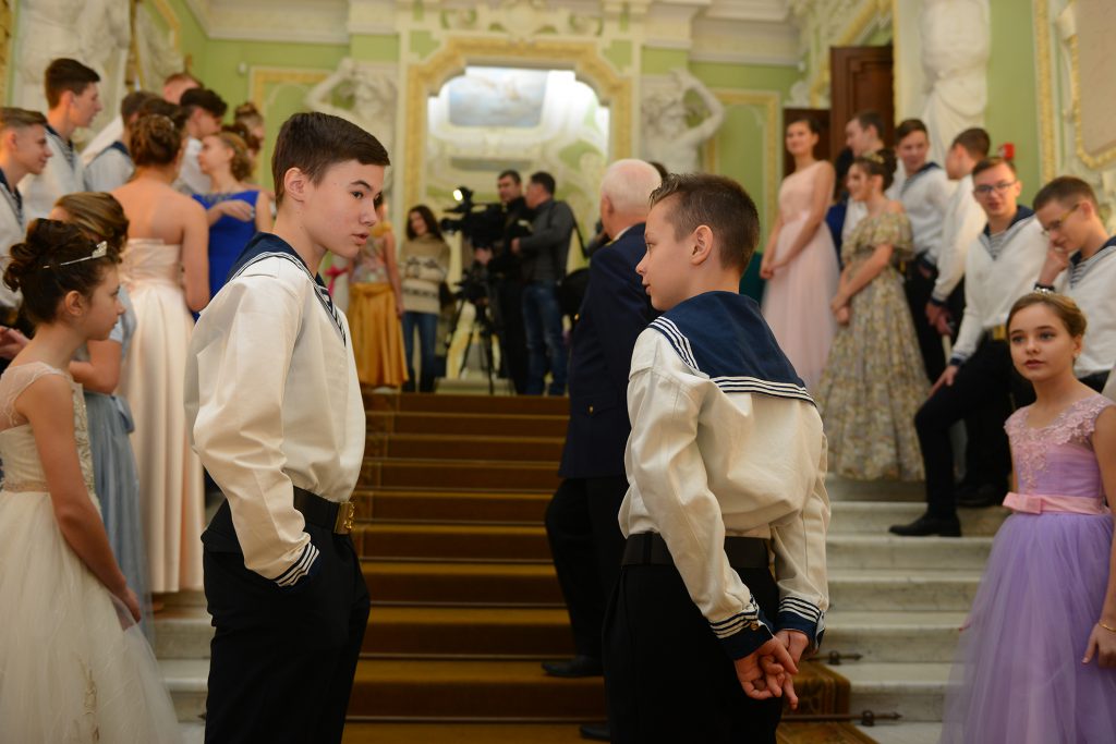 Перед началом бала все 22 пары выстраиваются перед входом в зал, где их уже ждут гости и родители. Девочки поправляют прическу и банты на платьях, а их кавалеры в парадной форме моряков стоят смирно и сосредоточенно. К этому балу они готовились несколько месяцев и весь год трудились, чтобы попасть на него.