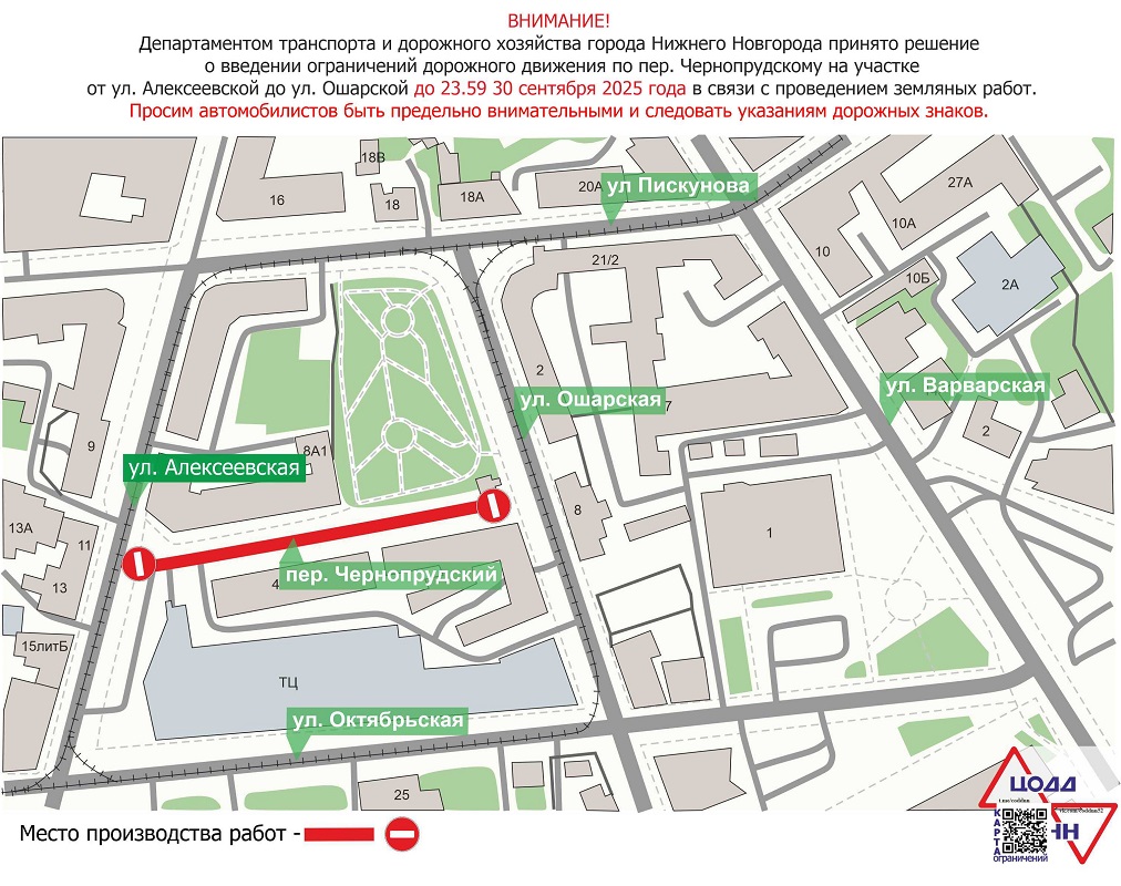В Нижнем Новгороде часть переулка Чернопрудского закроют до конца сентября